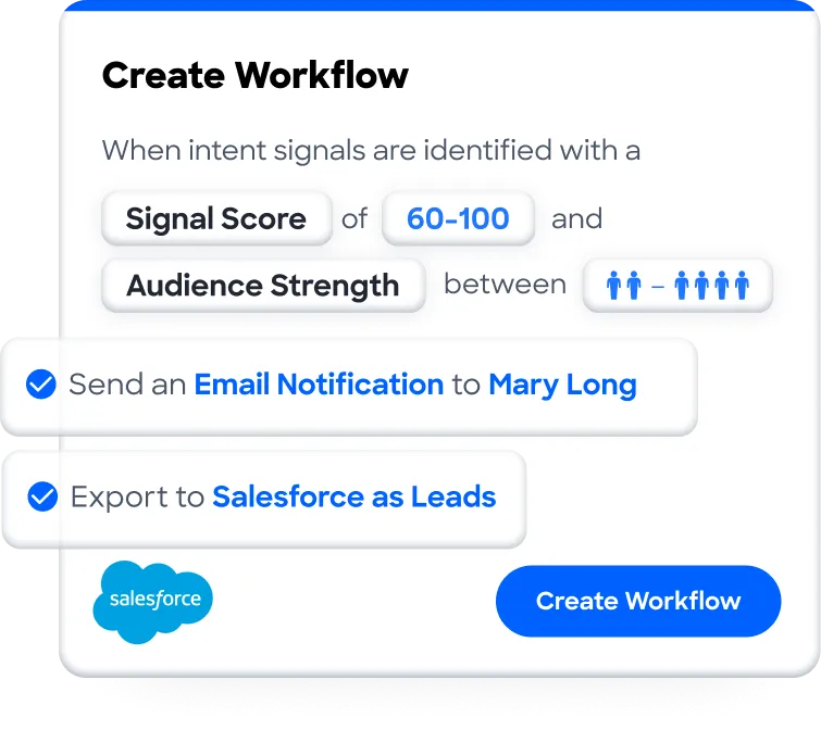 Push intent and contact data into your “empty box” CRM, sales, and marketing software to set up automated workflows that close more leads with less effort.